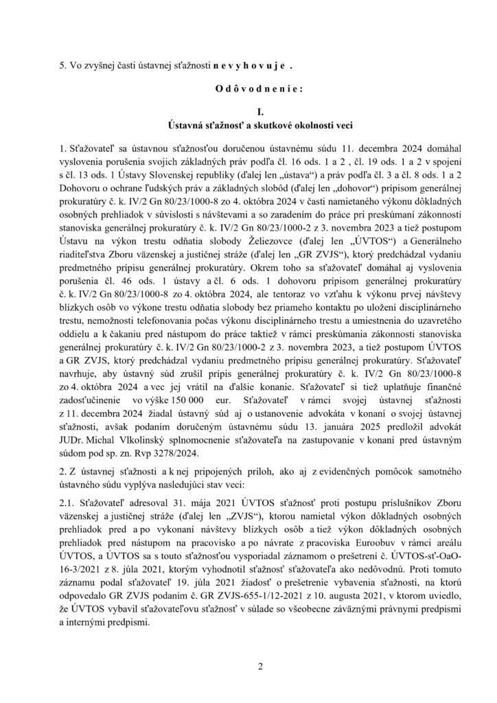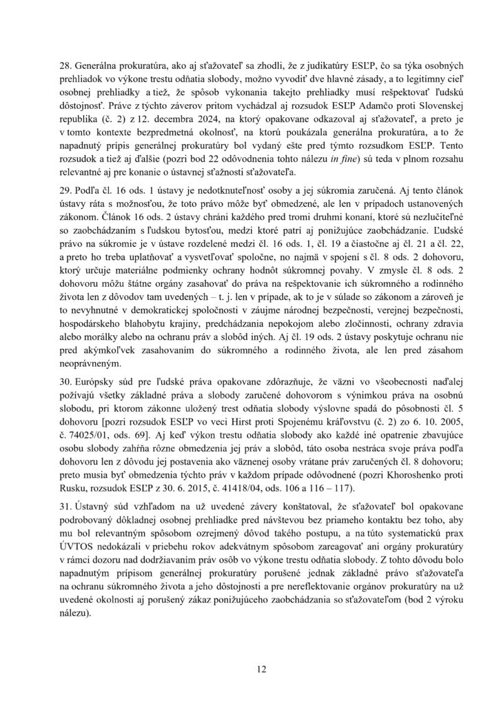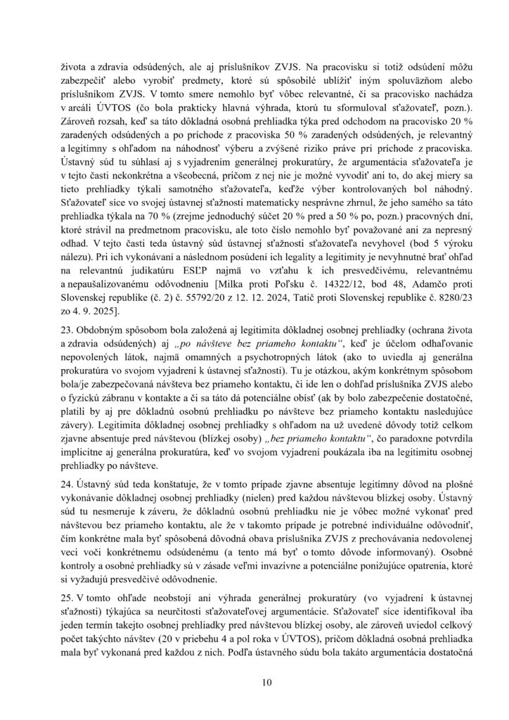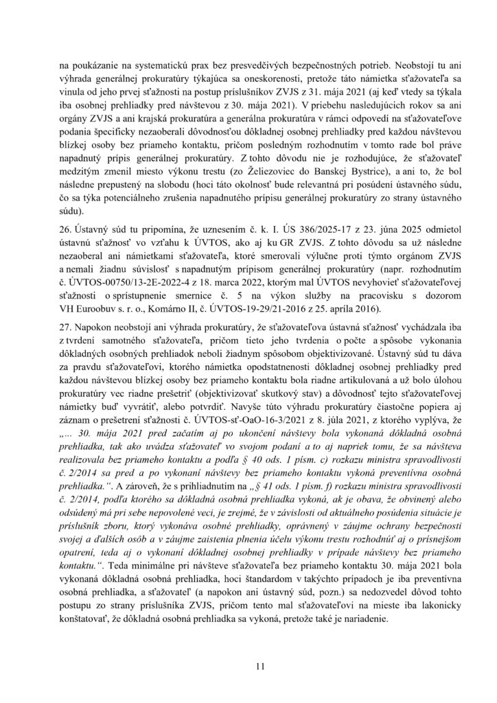 Dôkladné osobné prehliadky vo výkone trestu odňatia slobody