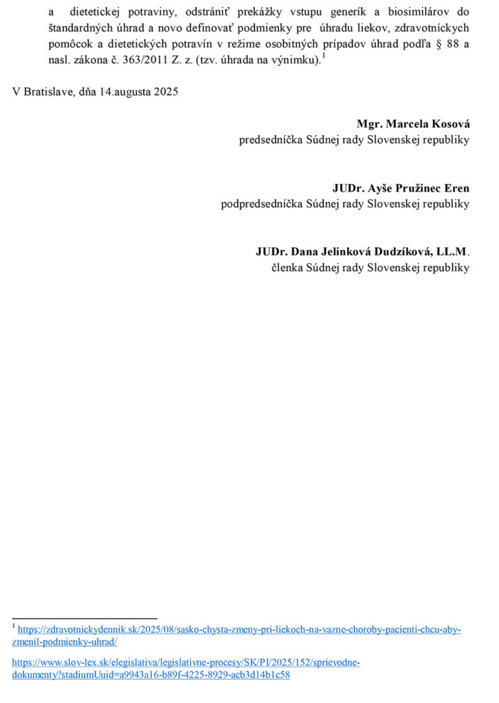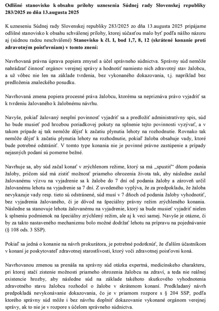 Odlišné stanovisko predsedníčky, podpredsedníčky a členky súdnej rady